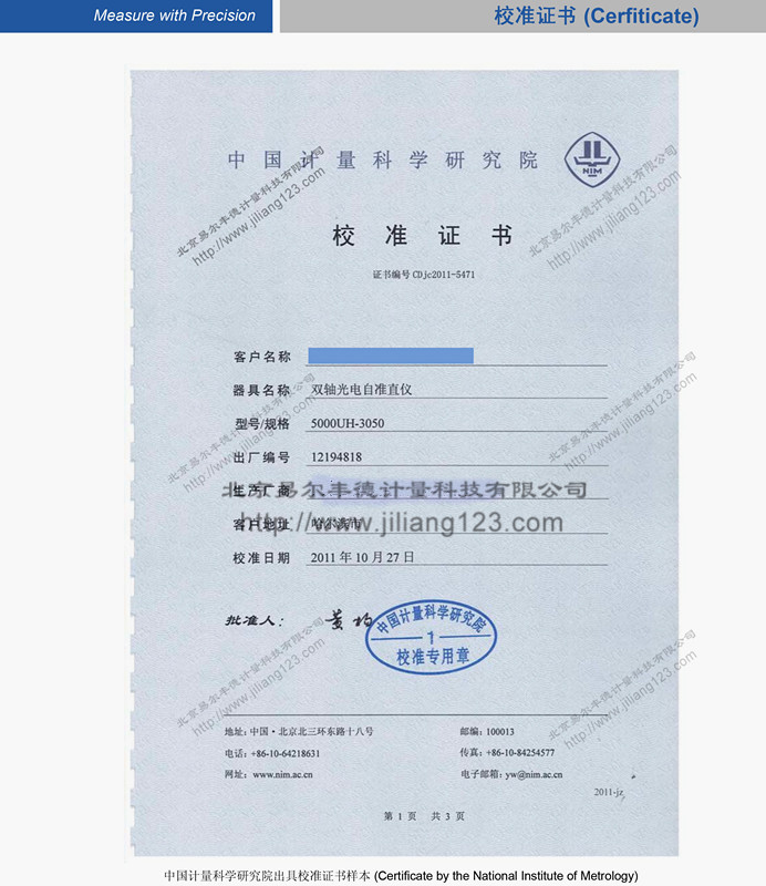 • 產(chǎn)品名稱國(guó)家計(jì)量院出具的光電自準(zhǔn)直儀校準(zhǔn)證書